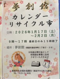 掘り出し物を見つける楽しさ!夢創館カレンダーリサイクル市【2026年1月17日(土)~2月2日(月)】