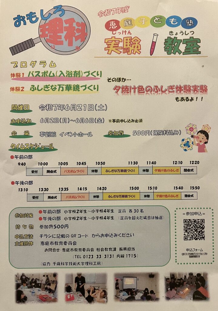 催事 令和7年度 恵庭子ども塾 おもしろ理科実験教室