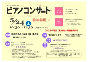 みんなでたのしむ♪ピアノコンサート【2025年5月24日(土)島松公民館 参加無料】