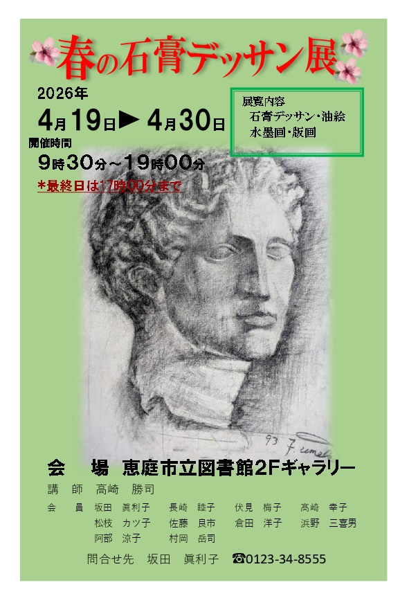 春の石膏デッサン展【2026年4月19日~4月30日 恵庭市立図書館2Fギャラリー】