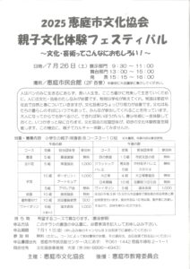 2025恵庭市文化協会 親子文化体験フェスティバル~文化・芸術ってこんなにおもしろい!~
