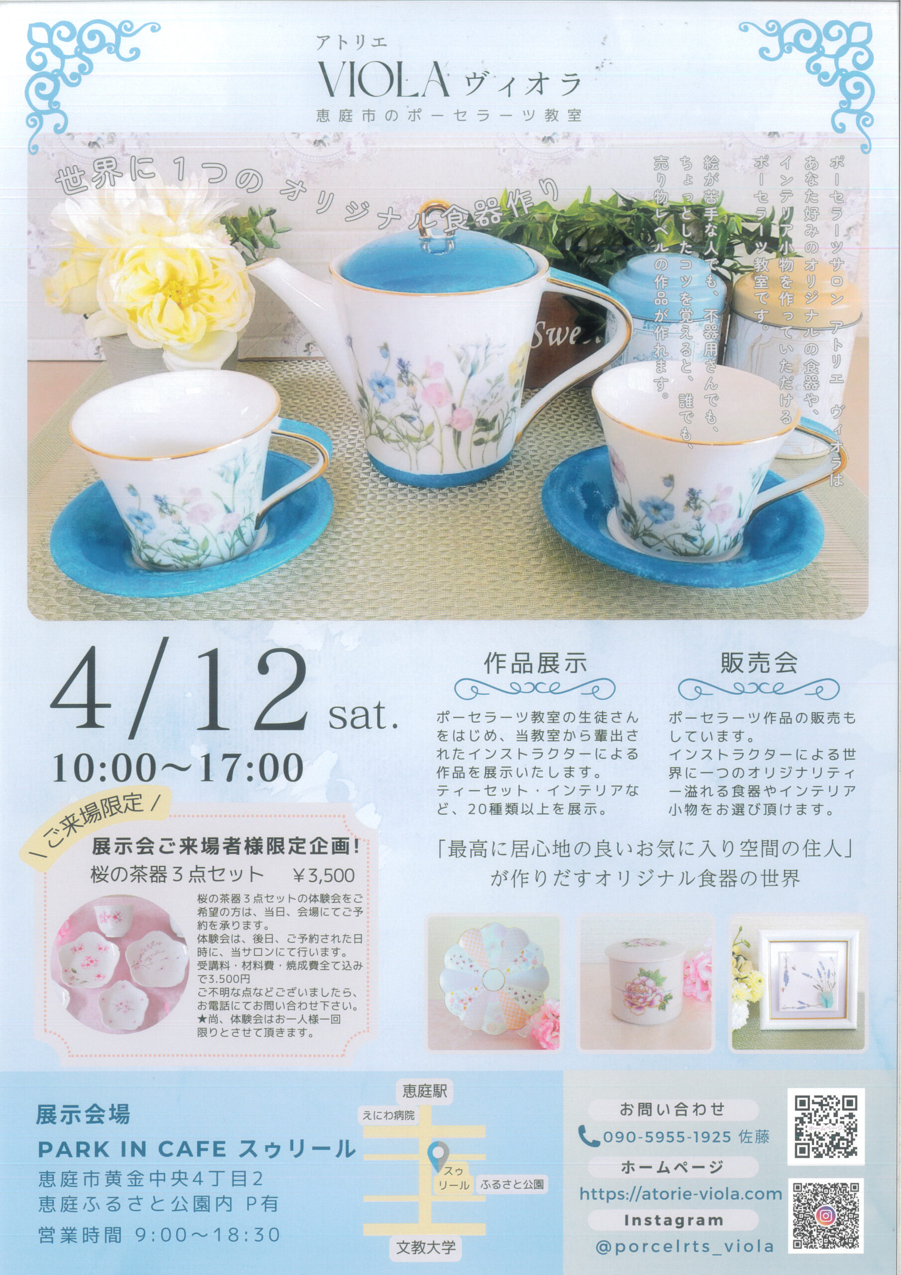 3月 17 @ 8:00 AM - 5:00 PM 世界に一つだけのオリジナル食器作りポーセラーツ教室「VIOLA」【2025年4月12日(土) 黄金ふるさと公園内 PARK IN CAFEスゥリールで開催】 PARK IN CAFE スゥリール 黄金中央4丁目2 恵庭市 北海道 Japan 催事名 世界に一つだけのオリジナル食器作 […]