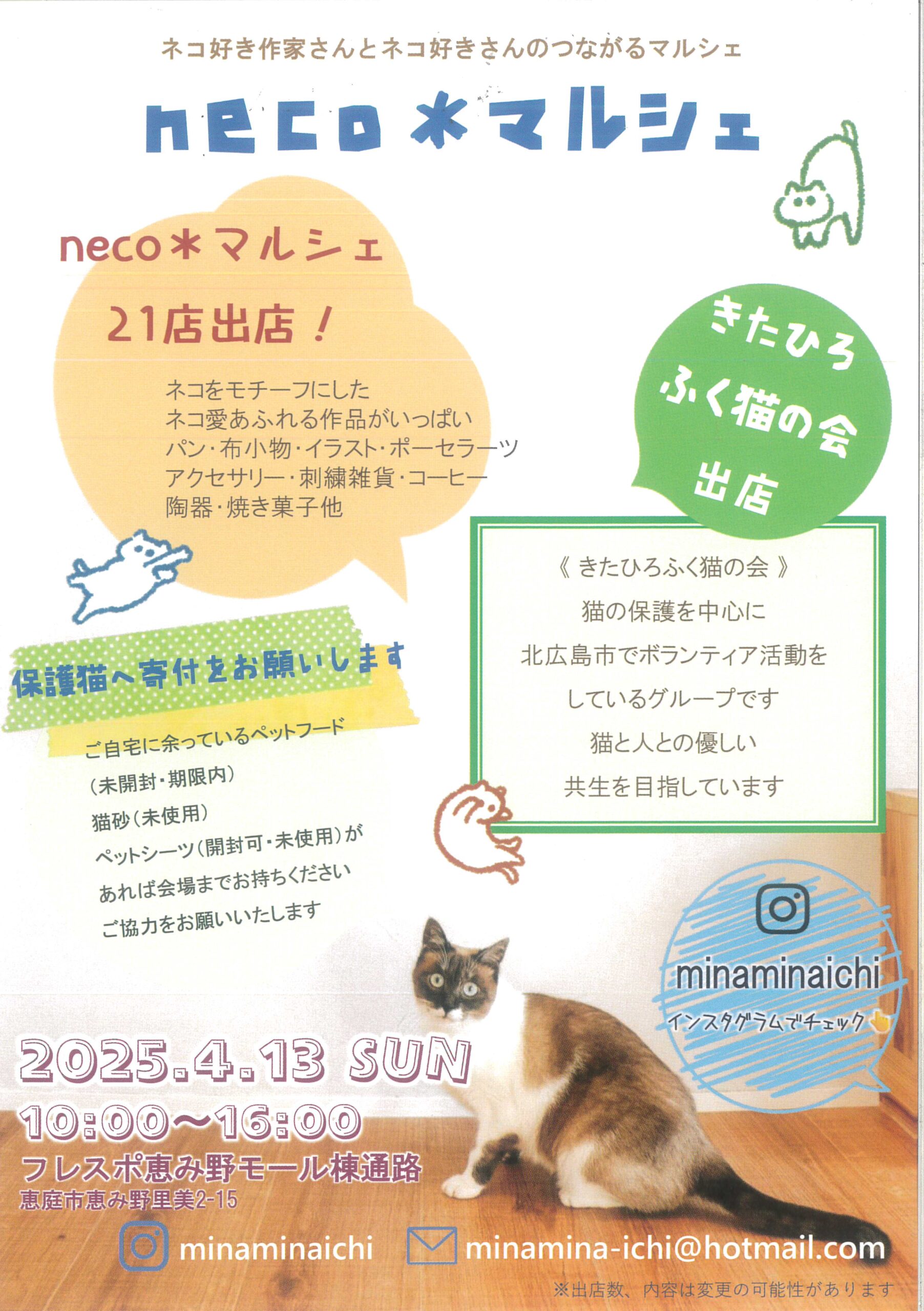 4月 13 @ 10:00 AM - 4:00 PM ネコ好き作家とネコ好きさんのつながるマルシェ「neco*マルシェ」【2025年4月13日(日)フレスポ恵み野で開催】 フレスポ恵み野 催事名 ネコ好き作家とネコ好きさんのつな […]