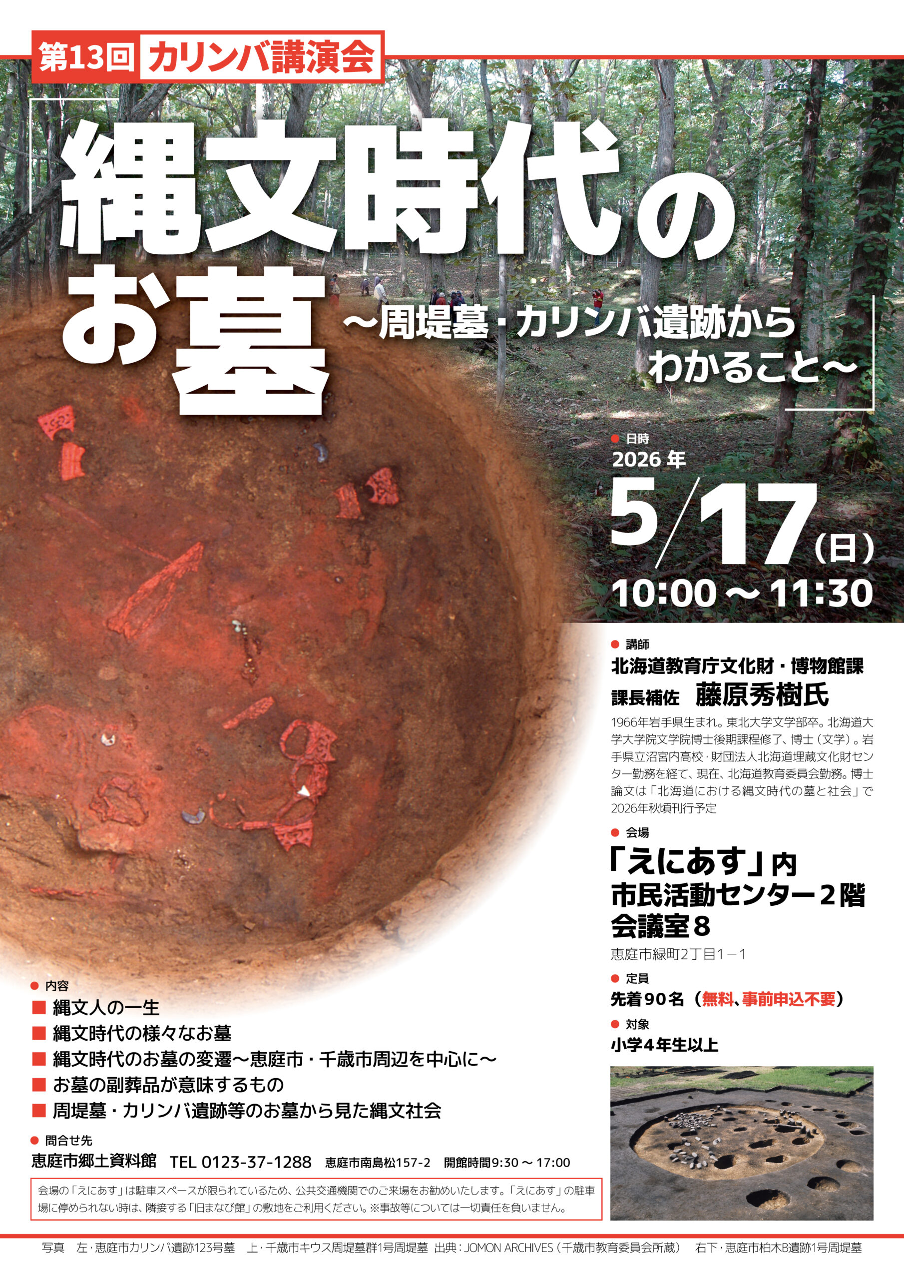 5月 17 @ 10:00 AM - 11:30 AM 第13回カリンバ講演会~縄文時代のお墓~【2026年5月17日(日)えにあす】 えにあす(恵庭市市民活動センター) 縄文時代のお墓~周堤墓・カリンバ遺跡から […]